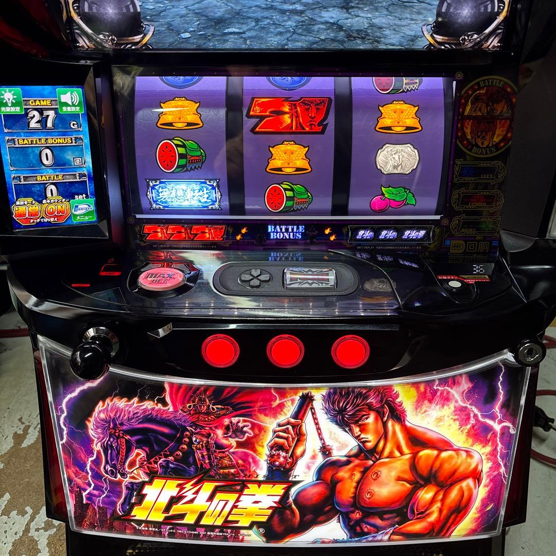 引渡しの場合は送料分を引かせて頂きます。送料5000円でございます。鶴見、川崎、横浜付近なら行けます。ニューアイムジャグラー EX-KT 5号機です使用に伴う傷、スレございます。付属品・不要機・ドアキー・設定変更キー・各スピーカー無段階ボリューム調整機・メダル別料金でお付けいたします。素人検品のため明らかな動作不良(停止ボタンが押せない等)以外はNC NRでお願いします,