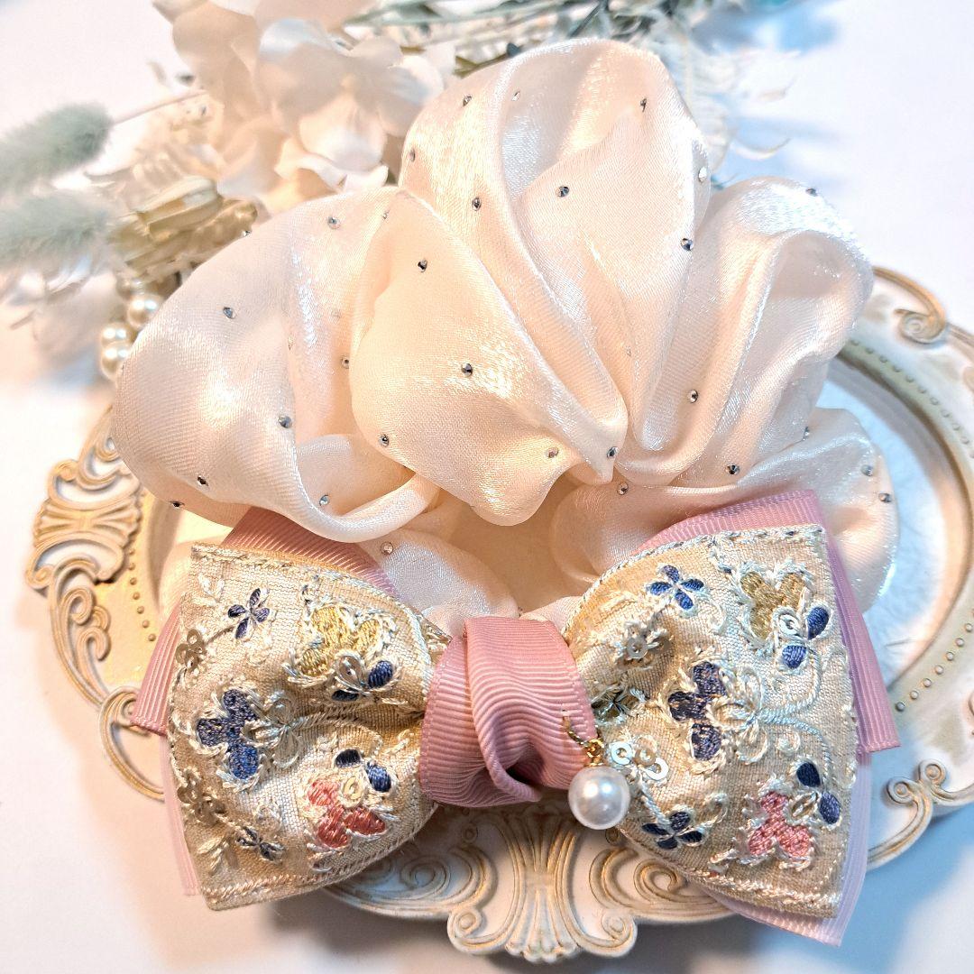 ❦商品説明❦エレガントで美しい色合いの素敵な生地で上品にお使い頂けます✴大人可愛いリボンシュシュです( ⁎ᵕᴗᵕ⁎ )❤︎ブレスレット感覚で手首に付けてもかわいいです✴大人、お子様もお使いいただけます(^-^)❦サイズ❦リボン縦約4.5cm×横約10.5cmシュシュ約15cmほんの気持ちですが...黒太ヘアゴム1点に付き1本お付けします♡❣️お願い❣️メルカリルールに記載がありますが、無断転写は禁止です(>_<)メルカリ以外もです!転売は可能ですが、メルカリ以外でお願いしますm(__)m❤️フォロワー様限定おまとめ割❤️◎2点以上ご購入で全品100円引き◎佐川急便/日本郵便発送❤通常おまとめ割り❤◎2点ご購入で合計金額から100円引、3点ご購入で合計金額から200円引…♡何点でも♡◎普通郵便◎厚みのある商品は追加料金なしで佐川急便/日本郵便発送させていただきます(*^^*)点数によっては、専用ページをいくつかに分けて発送する場合があります。その際は専用ページごとの精算になりますので、ご了承下さいませ(^-^)おまとめ購入の際は、『まとめ買いをお願いする』からお知らせ下さい♡ こちらで金額変更しますので、その後金額を確認してからご購入お願いします。⚠️金額変更前にご購入いただいても、おまとめ割りにはなりません。よろしくお願いいたします♪⚠️ご依頼後はなるべく早く対応出来るよう心がけますが、メルカリのルールで即購入の方が優先ですのでご注意下さいませ♪❁全てオリジナル作品❁ご質問等なければ、コメント無しで即購入OKです♪❁購入前にプロフィールをご確認ください❁その他、ご質問等ございましたらお気軽にコメント下さいませ 。.:*・゜✽.よろしくお願いします ・゜✽.。. あこ୨୧ (୨୧ᵕ̤ᴗᵕ̤)⑅