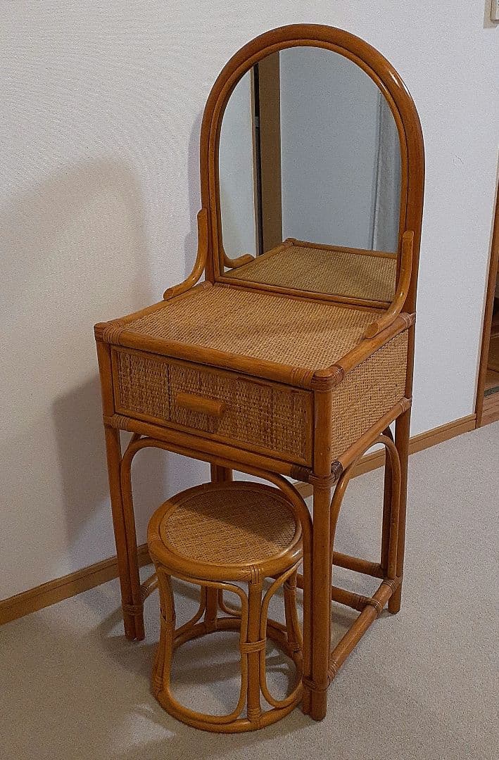 - ドレッサー置くスペース、家にはありません。これはホントにしっかりしたつくりのオカモチ。鏡の角度調整ができれば100点。 あと、私の背が高いのか(座高が高いのか)、ちょっとかがんでしまう。背筋を伸ばしてお化粧したいもんだわ。