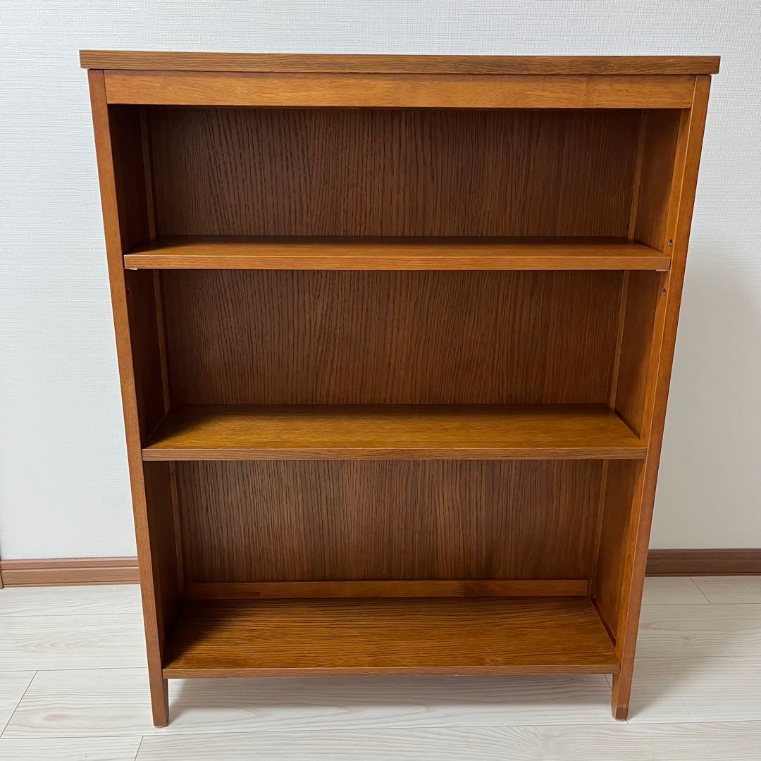 無印のオーク材本棚です。\rすでに廃盤になってしまったようです。\r\r・メーカー名 MUJI /無印良品\r・商品名 オーク材薄型ラック\r【仕様】\r外寸 幅80×奥行21×高さ175.5cm\r\r本体:パーティクルボード・フラッシュ構造、表面材:オーク材突板、背板・棚板:化粧紙、脚部:天然木(オーク集成材)、アクリル樹脂塗装、可動棚5枚\r \r商品状態\r・棚板2枚に木目?キズがあります。触った感じでは凹んではないと思います。(画像参)\r・その他目立った大きなダメージ等はないと思います。(素人の個人的見解になりますが) \r・大きな汚れ、キズ等はないと思いますが細かなキズ、スレ等はあるとお考え下さい。\r\r※拭き残しや見落とし等ございましたらご了承くださいませ。\r\r全体的に見て良品と思います。ただ、新品ではありませんので完璧を求める神経質な方は購入をお控え下さい。ご理解がある方のみ購入よろしくお願い致します!\r\rあくまでも状態に関しては出品者の主観での判断になりますので、判断材料のひとつとしてご参考にして頂きますようお願い致します。\r\r必ず写真にてご確認をお願い致します。\r※状態は写真をご覧になりご判断お願いします。\r\r合計300サイズの送料がかかるため、割高になっています。\r送料12000円込みのお値段です。